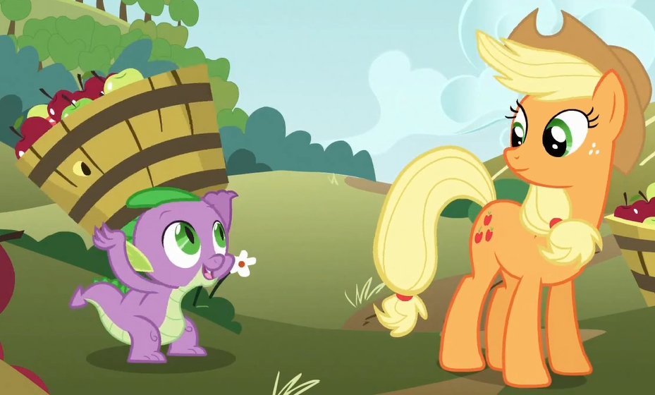 A day of of work for Spike lead to Applejack saving his life. He insists on fulfilling the Nobel Dragon Code by repaying her with help around the farm.