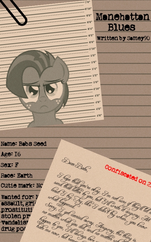 “The streets of Manehattan,” Twinkie repeated, sighing heavily. “You said that Babs is a wise filly. Do you know what happens when a wise filly from a poor family goes into the streets? She’s doomed from the very beginning. She has to fight everyday to survive; mafia, drugs, crime, prostitution… It’s a jungle. Only some of them make it. Most of them get tangled in the vines…”