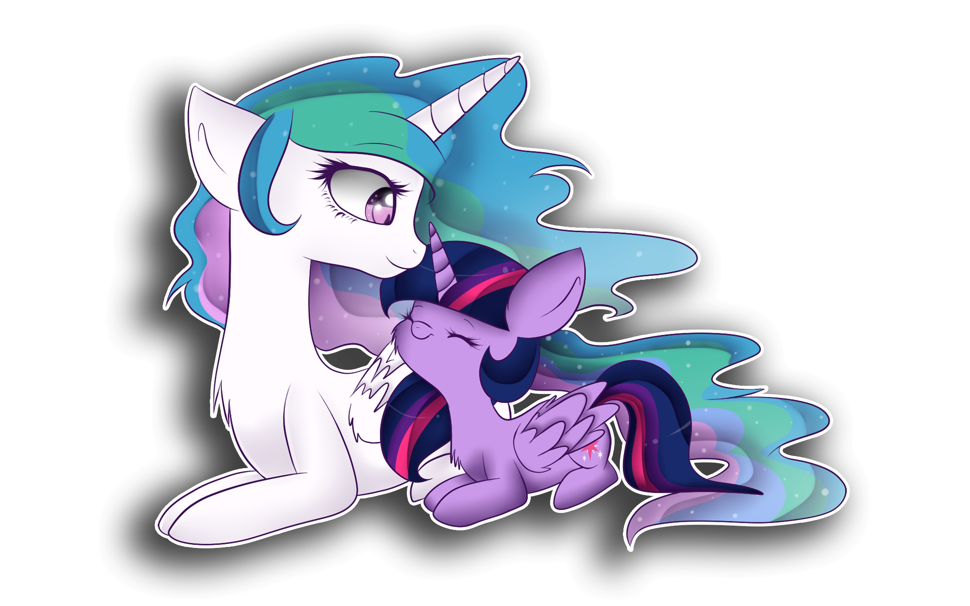 Twilight’s bright smile returned, so she nuzzled along Celestia’s neck. Celestia returned the smile, then cooed. Her eyes fluttered closed and when she opened them again, she shot Twilight a coy smile.