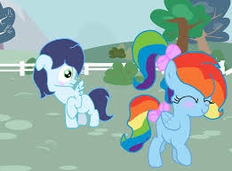 was created with crash,"ouch!!" shouted rainbow "Sorry my bad!" The young colt said. His eyes connected to her magenta eyes he instantly fell in love with filly."Alright fillies and colts time for you to find out who your rooming with!"said a mare with glasses."Ok,rainbow dash and Fluttershy you two will be sharing a room.".Rainbow zoomed into the room to find a pink maned yellow filly inside,she asked "Hey I'm rainbow dash wanna be friends?"the filly replied "yes!!!"she screamed"sorry if I startled you I just never had a friend before." "Well now you do Fluttershy.