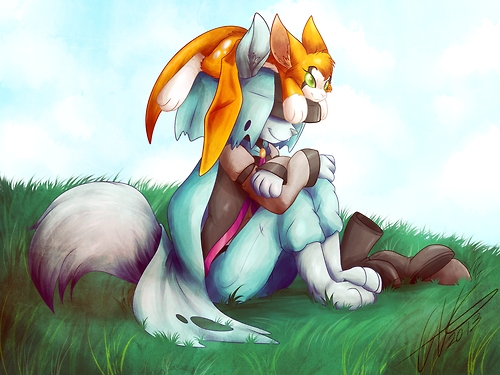 "F-...Fidget? What are you... how am I still alive?" Dust managed to open his eyes further to look at the now teary-eyed face of his friend. She looked like that when she said goodbye too. He thought. His question was ignored as the amber Nimbat fell to pieces on top of him, her little arms wrapping around his neck. Dust could feel her tears soaking the fur beneath his jaw, aided by his collar. He laid there for a further minute, gently patting the Nimbat on her back, the latter of the two having proceeded to drench the side of his face now that his neck was thoroughly wet.