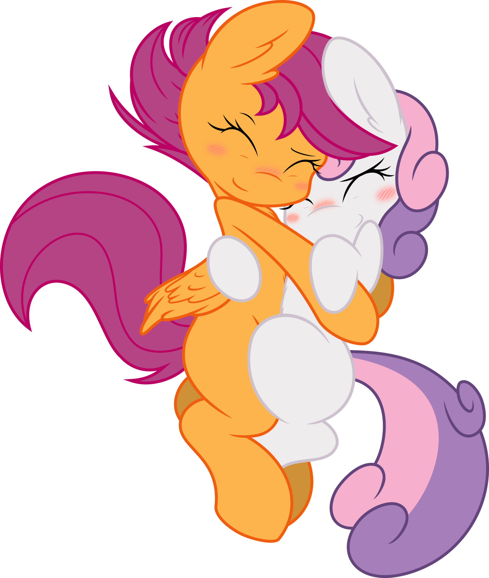 And, unable to resist any longer, Scootaloo leapt forwards and kissed her marefriend, pulling Sweetie tightly against her. Sweetie Belle squeaked in surprise, quickly muted by Scootaloo’s efforts, and her cheeks burned bright red when they broke apart.