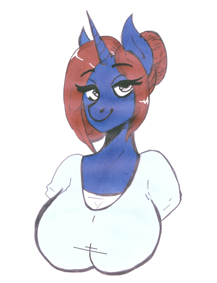 With Twilight now gone, Horizon could get back to her own business. Though her pants and underwear were off, but then again Horizon was known to walk around the Golden Oak Library without pants, Horizon kept her shirt on. This was a simple orange shirt that comfortably, yet tightly hugged her breasts. The bra she was wearing made her boobs nice and bouncy. Horizon wasn't a whore by any strict definition, she simply enjoyed the idea of carnality. But she also didn't open herself to anypony, only the ones she liked. Her blue fingers were back at work with her pussy, but this time she wanted to give her almost delicate clit some attention.