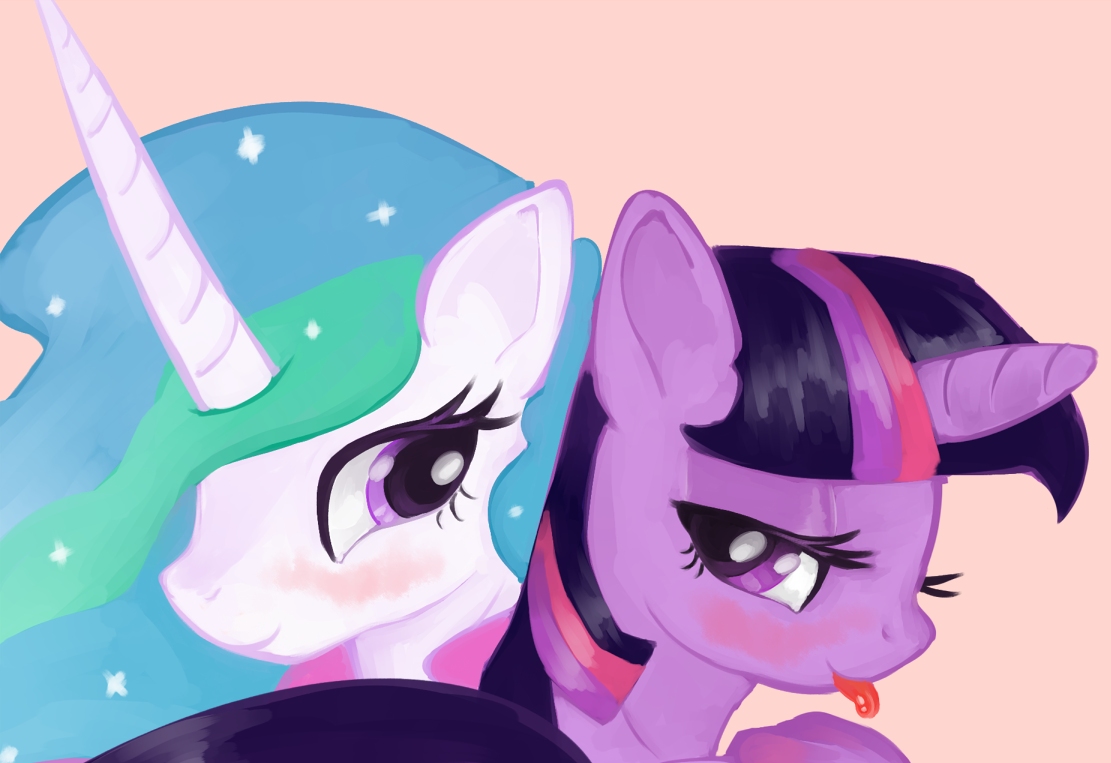 “Very well,” Celestia replied sternly, “we will continue your lessons another day.” With that, Celestia took her hoof from Twilight’s flank and pressed it to her warm, wet lips and stroked up and down until her hoof was slick. Celestia then swirled her slick hoof around Twilight’s pronounced clit and each pass called forth more moans and whimpers of pleasure. Celestia’s other hoof occupied itself with long, slow strokes up and down the inside of Twilight’s thighs.