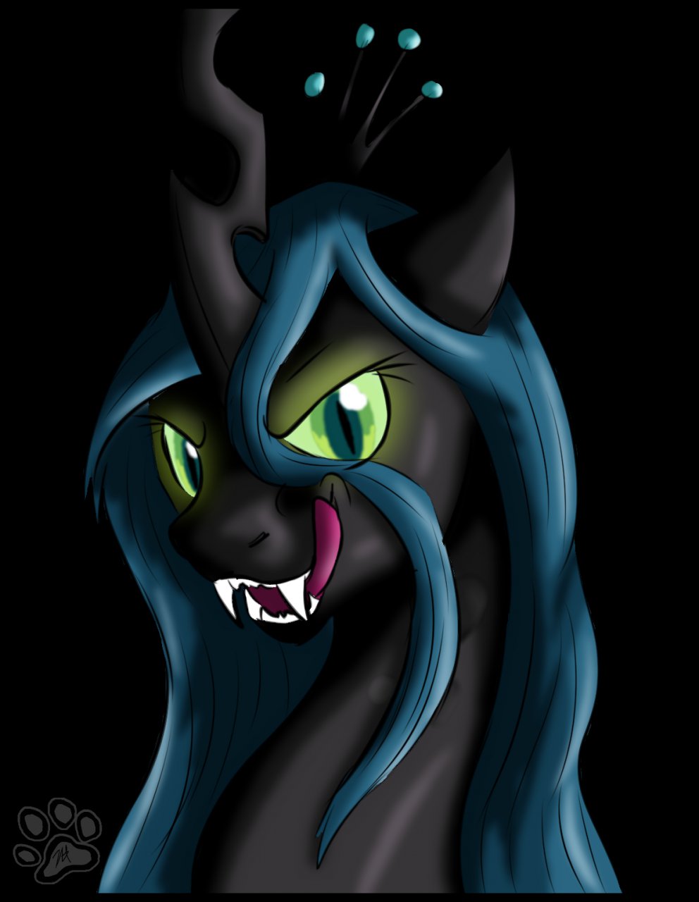 Queen Chrysalis is with eggs. Much like a pregnant mare, she requires much more sustenance than usual to provide for the new life growing within her.