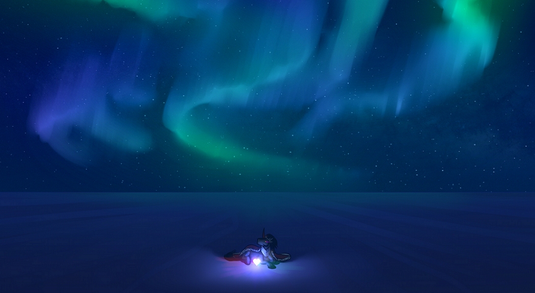 The ringing ceased. No dark voice came to replace it. Instead, Onyx could think only of the ponies he loved: his parents, his brother, and his dear auntie. He saw visions of them laughing and crying and living their long happy lives, and in his heart, he felt at peace.