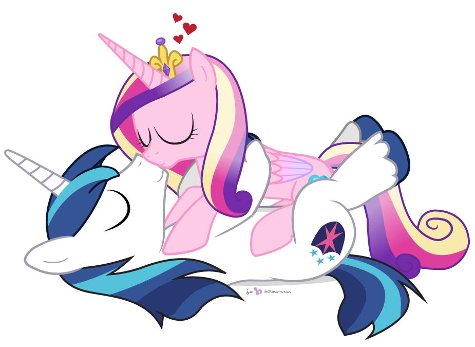 Shining rolled to his side, and gently tucked his hoof under Cadance’s tail. Her legs gently trembled as he pushed upward, letting the fine, silken hairs drape over his hoof. Shining carefully moved the tail up and over one of Cadance’s shapely flanks, gazing upon her nethers for the first time.
