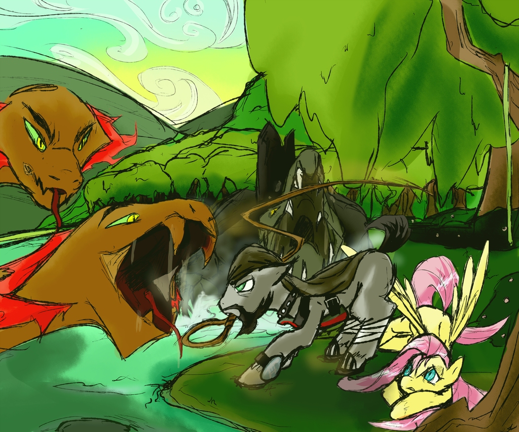 Fluttershy cringed as another boom filled her ears. When it faded, she took a deep breath. “I’m still getting used to all of this, Cratus. These adventures, everything we’ve done… this is all new to me. I’ve only had to deal with vicious creatures a few times before, and all those times I had my friends beside me to help. Out here, it’s just us and the Everfree.”