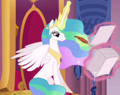 "Your Highness, I need you to sign these." Raven said to Princess Celestia, passing the papers for her to sign. Princess Celestia levitated her quill and scralled her royal signature onto each page. "And these." Raven said, passing her a couple more pages. "And... these as well." Raven lifted a massive stack of papers for the Princess's signature. Princess Celestia sighed, waving her assistant away with her hoof. Once she was alone, she retrieved a scroll and began to write.