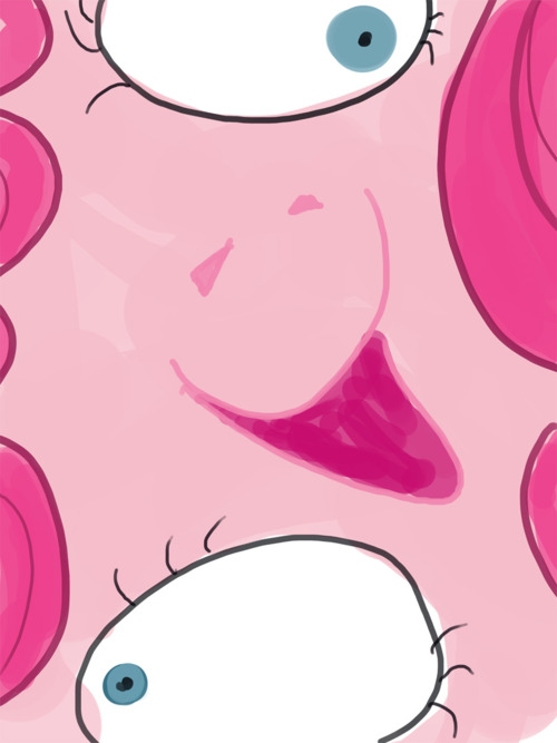She lets out a torrent of giggles. "Oh, and sorry that I called you 'Pinkie' just now. That would be so silly. A boy like you named 'Pinkie'. Although, your skin looks all pinkish, way more than even 'Peaches'! I don't get it!" She hops around and rubs up against you. "How did you get so pink on your planet ? Do you like take big-bubbly-baths in raspberries? You do use cherry paste for soapy-cleany-time?" She slides her head to the side, suddenly having a realization. "Ooh! Ooooh! I know! Do you chew a lot of pink bubblegum and eat it, even though you're not supposed to? A-ha!"