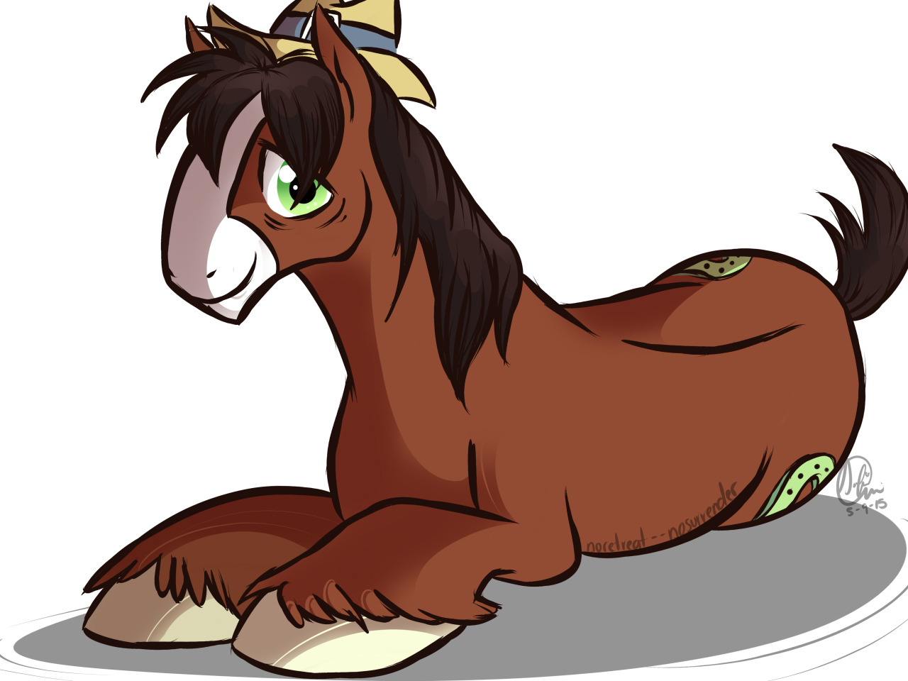 Troubleshoes is more than eager to help fix the damage he's caused to the rodeo. So when Applejack calls him into the barn late at night under the pretext of additional chores, he's happy to follow along. What he doesn't expect, though, is that Big Macintosh is waiting there for him as well - and that rather than more work, the two Apple siblings have a reward for him instead.