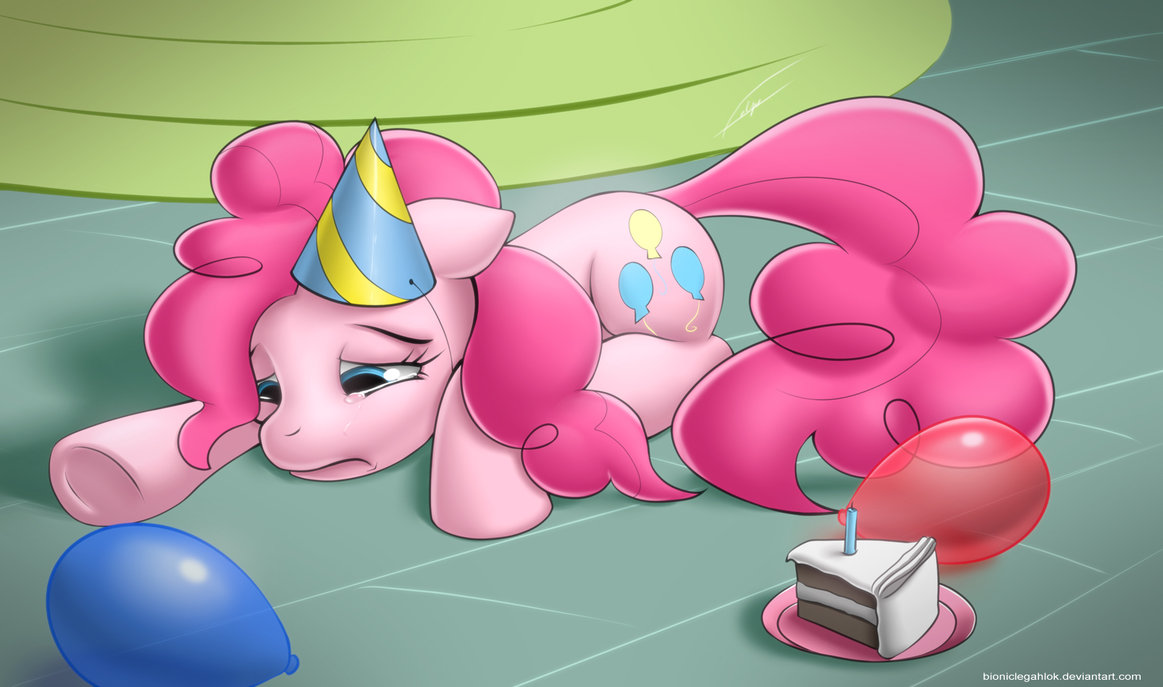 I suddenly felt scared, and lonely... What just happened back there was not a good thing, it was just like when my family (excluding Maud), ignored my existence two weeks ago. I prayed to Celestia that my friends did not break the Pinkie Promise... Yet... For they should, no. MUST remember me. I make everypony laugh, especially them, even Doodle! Fluttershy and Rainbow Dash are still out there fighting for their freedom and will to smile, and I will do the same!