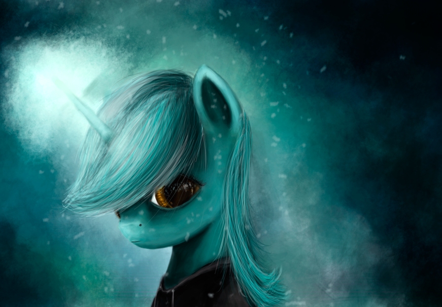 "Where, where am I? Hello? Anypony?" I shouted. The only answer I got was my own echo. "Roseluck?" Again only me. I looked around, pitch black was the only sight to see. I closed my eyes again and focused on illuminating my horn, hoping to see something that would hopefully give me a clue as to where I am. I opened my eyes again. I could make out a few rocks beneath me from the teal light I was giving off. I looked back at my lower half and saw it was partially submerged in an underground water hole behind me. I turned myself around as best as I could to face it. Squinting as hard as I could I tried to make out just how far it stretched out.