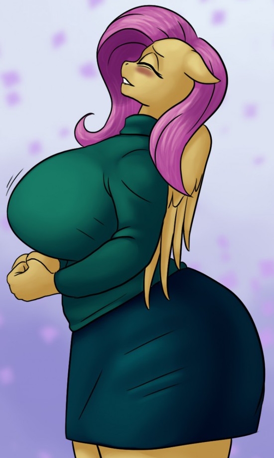 Fluttershy turned her attention back to her bust. Oh, dear. Her lips thinned as she hefted her heavy breasts with either hand, noting how much heavier they felt than the last night. It seemed they'd grown again. She picked up her discarded bra from the floor beside her bed and held it against her chest.