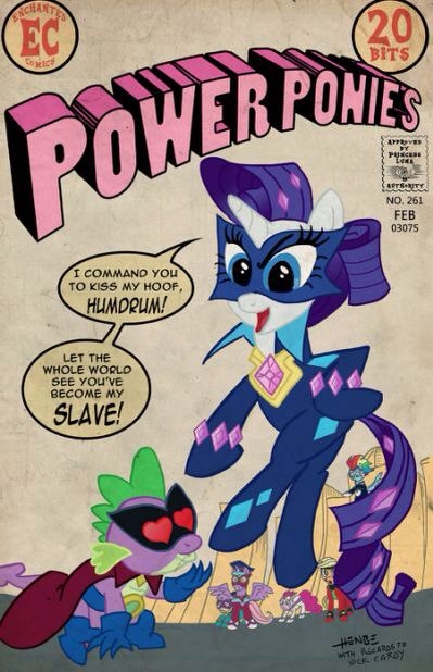 Spike finished the comic book and confusingly stared blankly, not knowing what the hell did he just read. He slowly turned his head around to ask for some clarifying explanation from Twilight. As a baby dragon, Spike was always innocent, other than burning out half the Special Agency for Secret Service Association (or SASSY in this case) building in Canterlot, or eating up a whole library in Crystal Empire because they were made up of gems. Power Ponies was the perfect tool to keep him busy and entertained with life so that he wouldn't go depressed on not having a childhood and commiting suicide, however, this time the latest issue has became... Well, an issue, because the structure of the plot was completely off from the original heroes-defeating-villains-and-saving-the-freakin'-day stuff, instead, it was... Romantic to be exact, like how he feels when seeing Rarity everytime. While Twilight was always fascinated with science and knowledges and discoveries and experimenting and studying, she often gets them off reading books, and that definitely includes reading classical literature that can make a dumbo like Daffy Duck into an educated looking banker who seems to understand the law, or read and analyze everypony's movement, motivation and feelings.