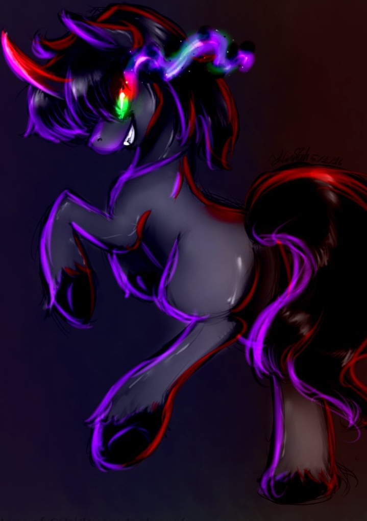 Onyx is a young crystal pony with a twisted mind and a complete lack of foresight. He relishes in the suffering of others and has a disturbingly chipper attitude. All this is to help conceal his absurd desire for revenge and bloodlust. When he was young, Starswirl the Bearded whisked him away from the Crystal Empire with promises of being his apprentice. Years later, this led to the one spell that changed Onyx's life and devastated an entire country, and much more.
