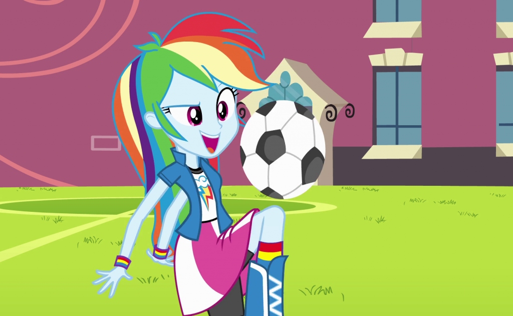As the players kicked the soccer ball back and forth, sometimes stealing it from opposing players, sometimes kicking it to their teammates, Spike noticed how the rest of the players often got distracted with watching Applejack run before getting their heads back into the game.