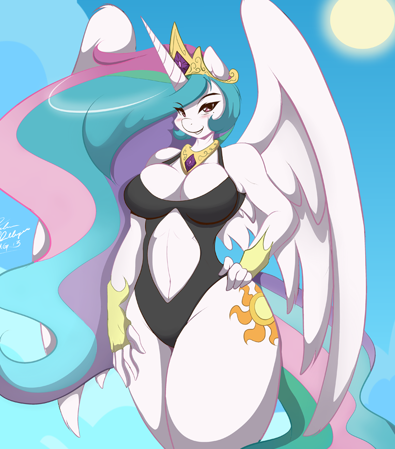 That described most of her body, really. At seven and a half feet in height, with a slender, toned body and a bust and butt most mares would kill for, Celestia was a stunner. When set free, every bit of her body jiggled, throbbed, and bounced. Held within a dress, though, every bit of her glorious figure was barely contained—hinted at, certainly, teased, but concealed.