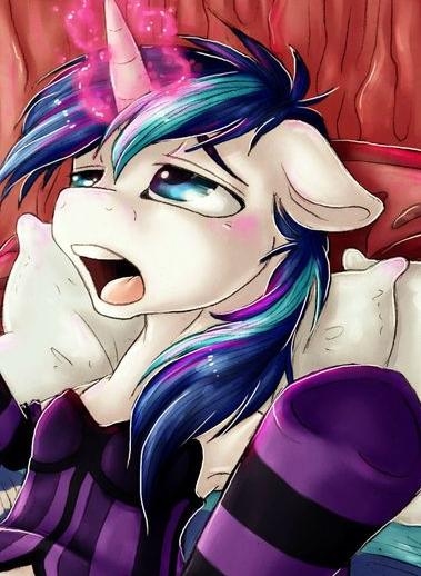 Shining bit down on his lip, his muzzle scrunching up as a hoof touched his flank. Twilight was behind him, caressing his rump lightly. He could feel her tip sliding between his asscheeks, his big, fat flare weighing on his hips as she eased herself onto him.