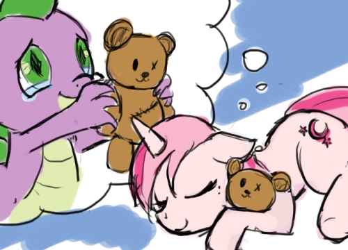 “Moondancer! You’re awake!” Spike held me too, his claws just shy of touching my coat. I rubbed my head against his neck.