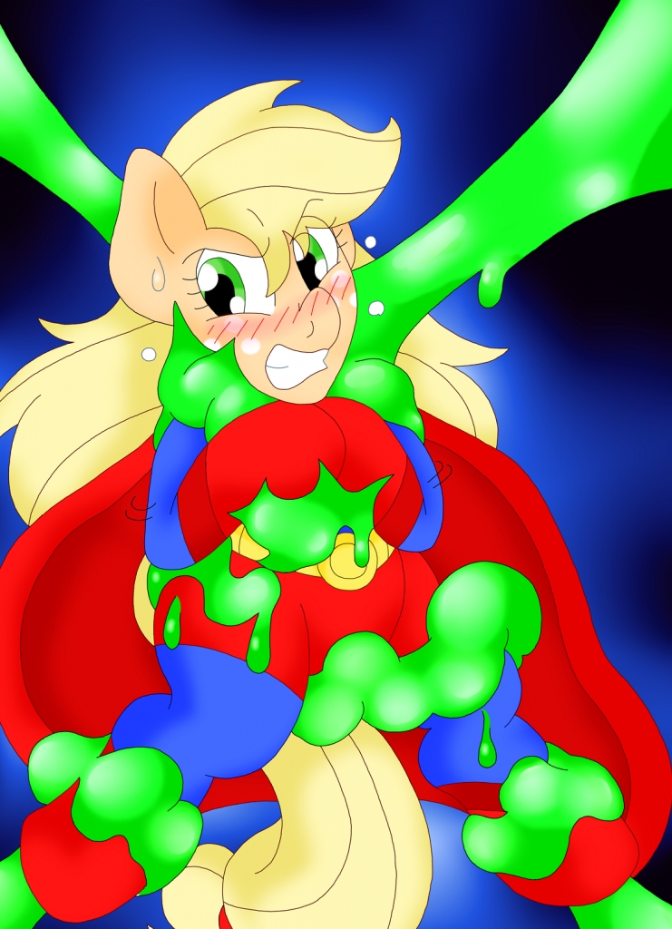 Even to say that sentence out loud made Applejack shudder. Despite the ordeal of being the slime monster's prisoner, her invulnerable body could still remember exactly how tight the creature had squeezed her. She would never forget how easily it had slipped inside her, pistoning into her, right through her costume, filling her up better than any—