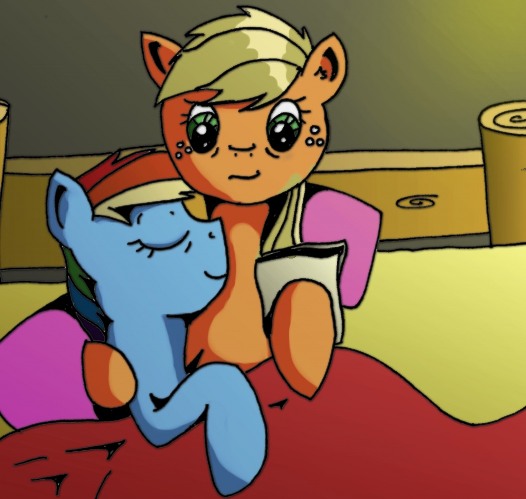 Applejack kept absent-mindedly stroking Rainbow's colourful mane. "In that case, I love you t—"