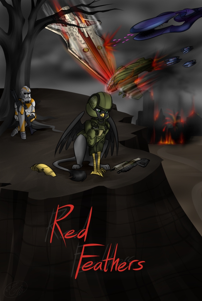 Putting Alice into one of the many deep pockets of my uniform, I buttoned it so she wouldn’t fall out. My uniform wasn’t from Captain Comet and the Starfleet Show, but a grey and black camouflage uniform like the military Ponies wear. It had a hole burned through the chest -- and the armor plate that had saved my life. Poking a talon through the hole, I could feel the furless patch on my chest.