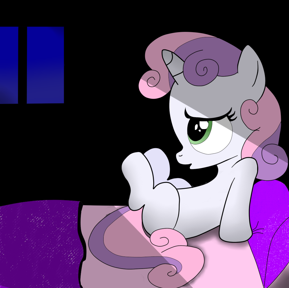 I sigh, staring at the ceiling. My whole life is one continuous blur of failures. I can’t even stay awake for long enough to see Rarity. To hear her saying goodnight to me. To wait patiently till she closes the door of my room and goes to sleep. Straighten the blankets and go to sleep myself like a good filly should.