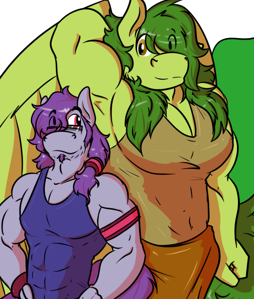 Cheer’s arm flexed a bit beneath his fingers, and Lav found himself biting his lip, his crotch stirring madly. He was fully hard now, his cock pinned between his hips and the back of the couch. Had he been leaning further forward with his robe open, Cheer would have certainly been able to feel Lav’s stiff flare brushing across his back. And given the way Cheer had just hulked out of his shirt...Lav certainly wouldn’t have minded grinding his stallionhood between his oversized coltfriend’s trapezoids.