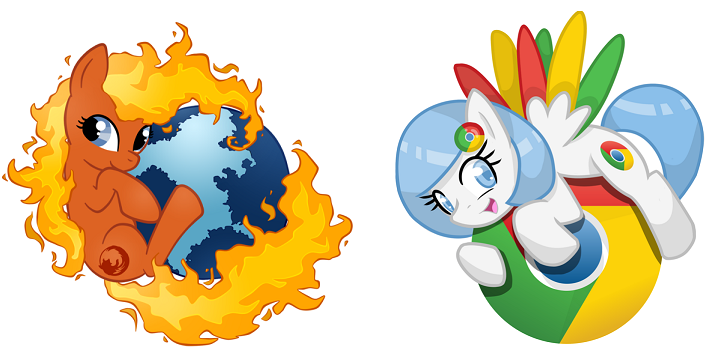 Twilight nervously nodded. She hadn't expected this at all. Twilight surveyed every inch of the pony-version of her favorite browser, sliding her body off of the teddy bear. Chrome hopped up and clopped her hooves, overjoyed to hear Twilight's response. Twilight drank in Chrome's pretty green, yellow, and red wings as they brushed up against the bear, Chrome's long, flowing light-blue tail curling up along her hooves.