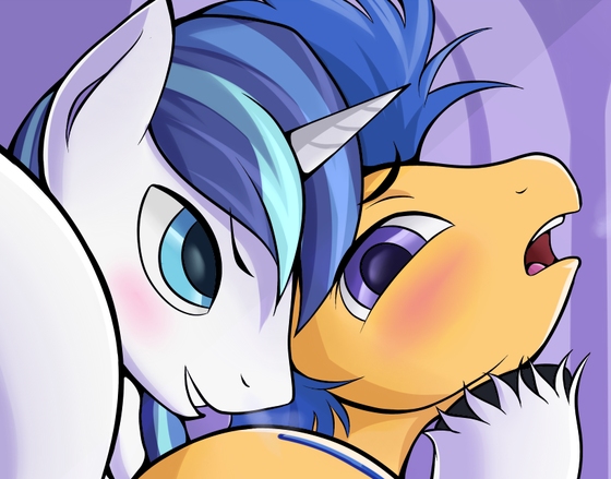 “Fuck… Shiny!” He pushed his rear as hard as he could back into Shining’s lap, gasping as the Prince’s stallionhood pushed as far as it could go into him. “Fill me up… breed me! Make me your mare!”