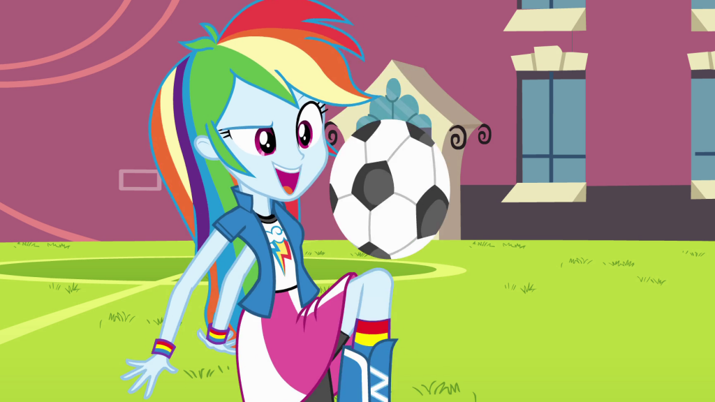 Nodding back to her, Rainbow turned, walking over to a soccer ball that had been lying idly on the side of the pitch this whole time. After picking it up, she threw it up in the air and started bouncing it on her knee a few times, a display that caused a few of the other girls to roll their eyes. But, once she'd had her fun with it, she held the ball in her hand, looking to the Crystal Prep Girls with a smirk on her face.