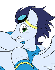 When Soarin' can't find his uniform in time for practice, he hastily throws on a spare flying suit to cover up. That spare uniform, though, is an old Wonderbolt practical joke—and as a blushing Soarin' takes note of how well it outlines his large endowment, he also begins to notice it framing his figure in other—more feminine—ways. His problem isn't helped when Spitfire finds him dallying in the locker room, especially when she starts to take advantage of his growing figure…