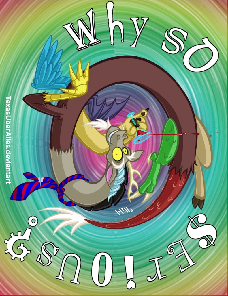 Okay, keep it together, Discord. Keep it together! You have experienced far, far worse than this in your long, long existence spent mostly turned to stone. This is not going to get to you. All you have to do is think. Think like Fluttershy. Or was that Rainbow Dash? One of those blasted ponies is good at thinking, aren't they? Am I?