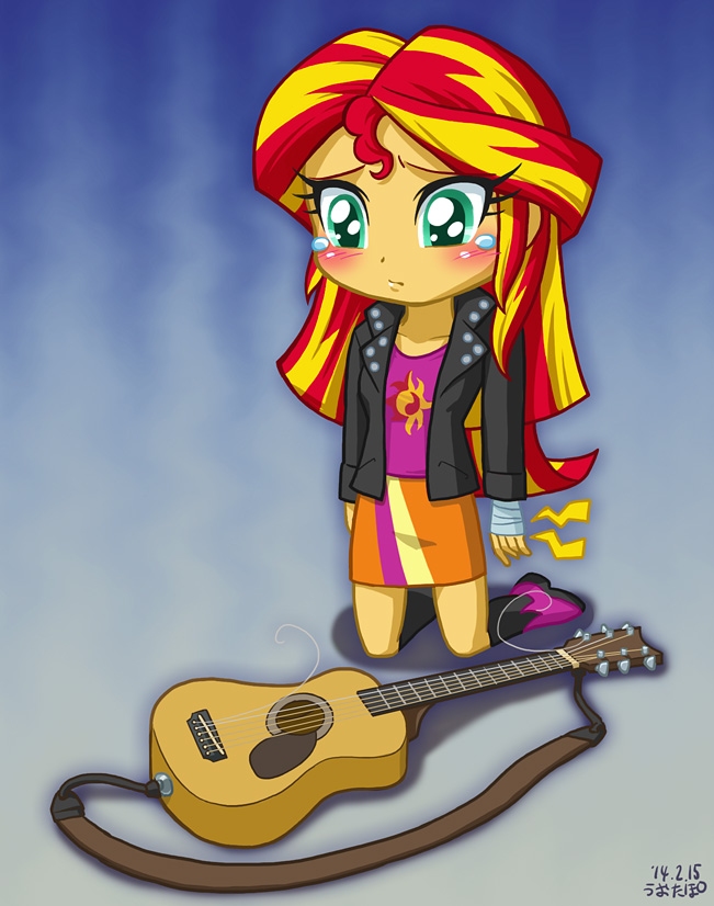 Sunset Shimmer learns to play guitar.