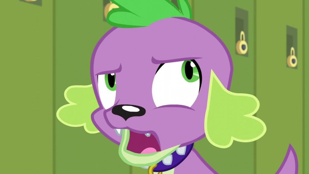 While Sunset shook her head at this, Spike looked to his master, looking a little concerned.