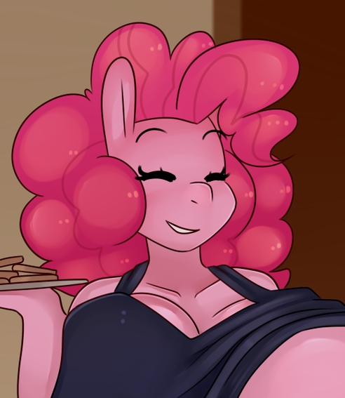 Her secondary pie shelves—sorry, hips—brushed up against the sides of the pantry door as she forced her way in, the metal frame squealing in pain as her thick, flared-out hips brushed it aside as easily as it might a few strands of hay. Her breasts did much the same, leaving an hourglass impression in the door behind her. Thick thunder thighs flexed beneath a pair of glorious asscheeks that each could have fit a foal comfortably inside, her voluminous assets bouncing with the happy little stride of her step as she sashayed inside. The not-so-subtle sway of Pinkie’s waist set her heavy girls bouncing as well, her monstrous U-cup boobs squishing against her now-pudgy belly as she ducked low enough to fit inside of the pantry.