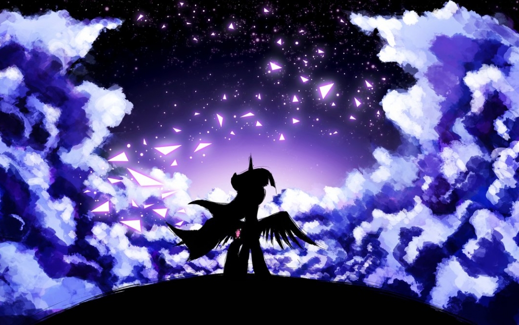 Her heartbeat increased with a mixture of emotions she didn't stop to identify and Twilight's ears perked forward. Her eyes widened as she attempted to search the dark sky for any sign of the still-going sound.