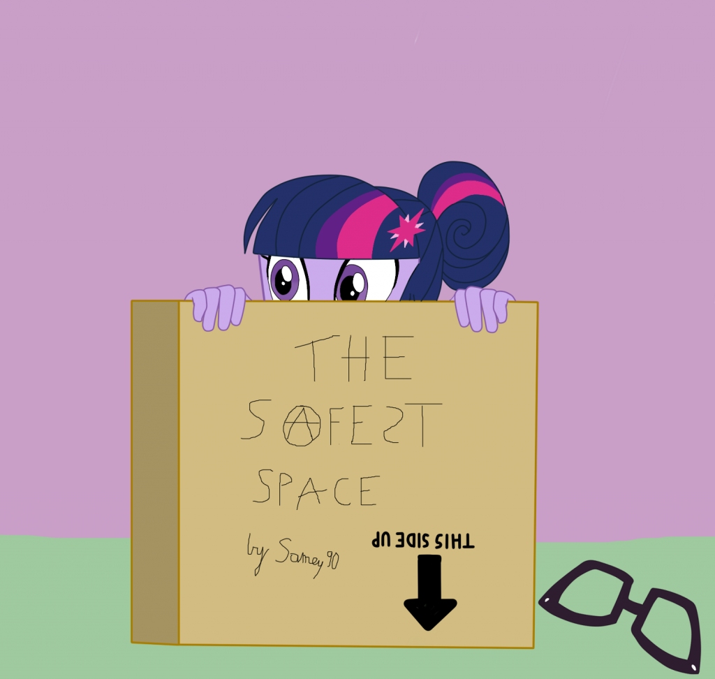 “No, we had Latin at school.” Celestia looked at the monitor again. “So, A Safe Space is a place where anyone can relax and be able to fully express, without fear of being made to feel uncomfortable, unwelcome, or unsafe on account of– Huh. That’s quite a lot of things.”