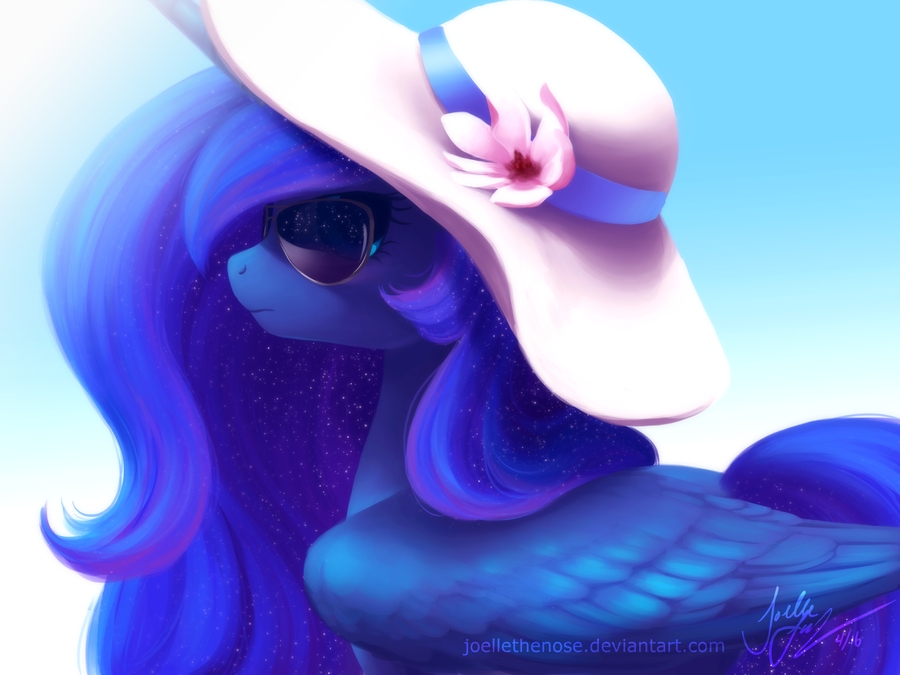 I stared at Twilight Sparkle from behind the pair of dark sunglasses perched on my muzzle. My face was shaded by a large white sun hat that begged to be pulled down even more. The younger mare sat across from me and was sipping a strawberry lemonade with a cheery smile on her face. A few shiny maneclips in various colors aided in sweeping her mane to the side as she scanned the menu with her eyes. We were both at a street-side table in one of the many cafés near Canterlot's vast markets. She had told me that this was one of her favorite places and that they had the best sandwiches on this side of Equestria.