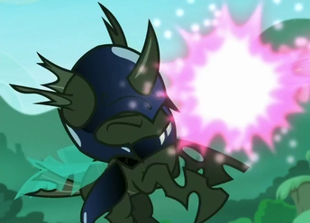 "Infiltrator," she corrected. Most changelings got that wrong about her. "Part of a deep cover mission." A green flame enveloped her, replacing her pony appearance with that of a changeling. Her frame was slightly thinner, her body less muscular with not a single scar blemishing the almost shiny surface. Even her wings were perfect.