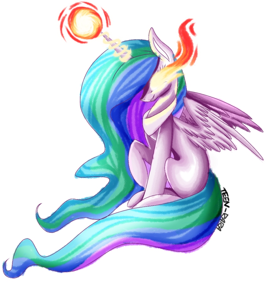 But Celestia didn't want to. Something within herself halted, blocking out the yearning for heat with something else: all the icky feelings that came about when she thought of magic, big magic in particular, like the kind Luna was always talking about. It was something that left a dry, sour taste in her mouth. She wanted magic to be simple — more than that, she would rather soar!