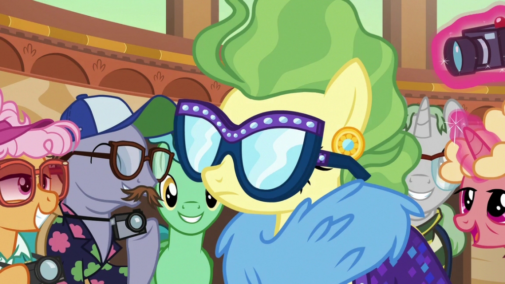 The spontaneous clopping of many ponies could be heard as Filthy Rich, Spoiled Rich and Diamond Tiara made their way onto the elevated platform, the trio demonstrating highly variable demeanor in their ascension. Filthy was trying to be as stoic as possible, but visibly petrified as the prospect of seeing his long-lost mother again. Spoiled was predictably in her element, curtsying and blowing kisses while encouraging her daughter to do the same. As for her, she just looked underwhelmed by the whole palaver. After all, it's a bit difficult for a filly to get excited over somepony she's never met, and only found out wasn't actually dead, until very recently.