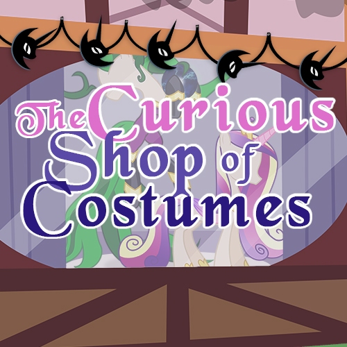 Tucked between a furniture store and a shop that specialized in antique lamps rested a Nightmare Night costume shop open only for a couple months out of the year. The small shop didn’t have a name and instead only had a large window display in the front showcasing some premium costume options. An elegant Princess Cadance costume stood on a white pedestal beside an elaborately designed Mane-iac costume, both of which were dressed up around pony shaped mannequins.