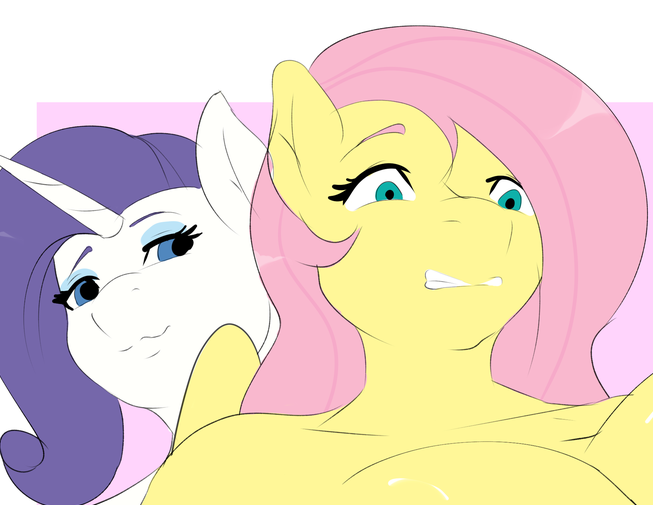 An elegant white finger moved down to fondle at a bright pink nipple. Fluttershy shivered, a clear surge of pleasure rippling through her body. Smiling, Rarity pulled her weight back—if only for a moment.