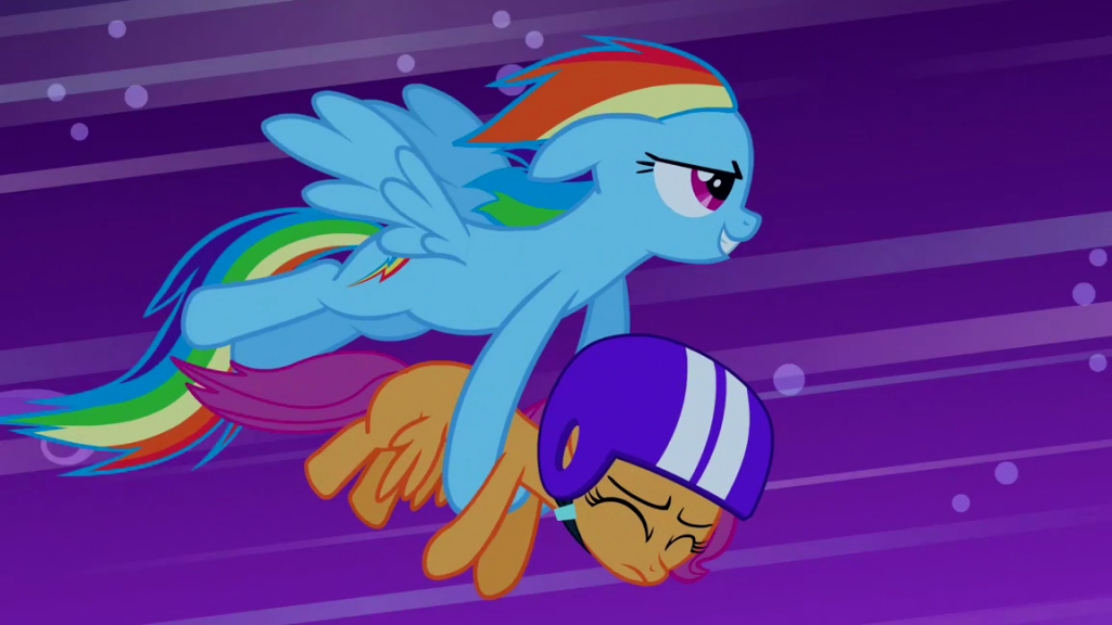 Scootaloo is upset, and Rainbow Dash is determined to cheer her up. But the usual methods don't appear to be working. Perhaps the answer lies... in the sky.