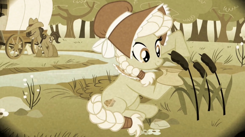 Now, this is odd. After all the plates are put away, the leftover grub has been thrown to the birds and some wacky yellow stallion in a waistcoat and stetson has finished goofing around, everypony starts work on erecting a giant wooden structure. They're very excited, with their hammers and nails and planks of wood and whatnot, but I don't see the point. We have a perfectly good building already, that looks just like the one they're constructing on the blueprint they insist on showing me, so it just seems like an almighty waste of time.