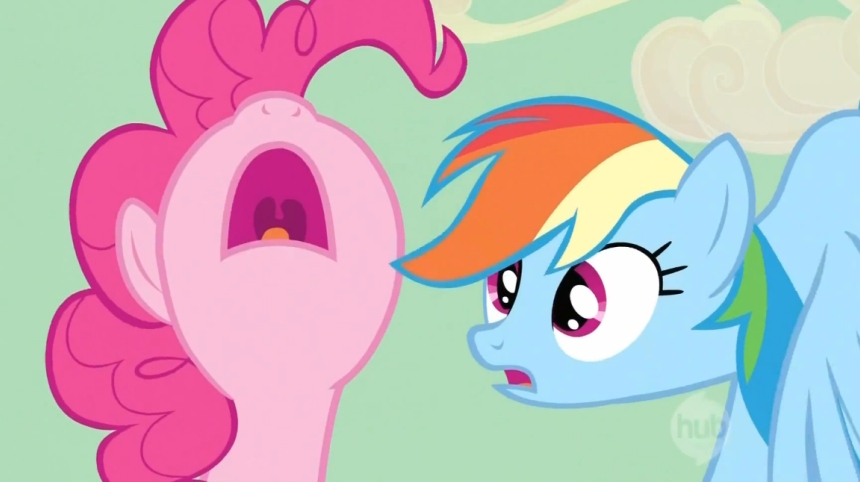 Oops. Something Rainbow had apparently forgotten about was that Pinkie had the attention span of a fraction of a millisecond, and before the blue pegasus could utter another pensive word she felt a pink breeze brush past her into the backroom, where she'd been kind enough to lay out the corpse of the little alligator in state. She'd really wanted to prepare Pinkie for what was to follow, to soften the blow which would hit her like a tornado at a thousand feet in the sky. This was a Dash metaphor, naturally.
