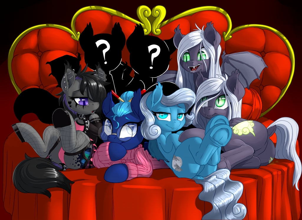 Both Evening and Nocturne made a small zipping gesture with their wings over their lips before giving off a sly smile that showed off their fangs, causing Dawn to faint. Blue and Moondrop rushed to their sister’s aid, fanning her with their wings while the twins both burst out into evil cackles.