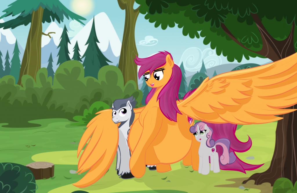 “I know.” Scootaloo put a ginormous orange wing around him, like a soft, feathery tarp. “But I also know we’ll get through it. Trust me, we’ll be on the fast track to the biggest family in Ponyville before we know it!”
